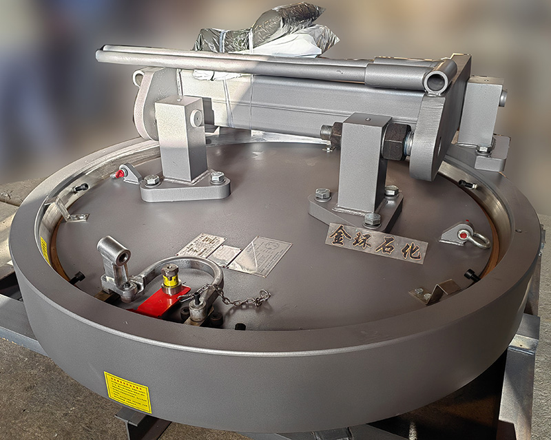 快開(kāi)盲板是用于壓力管道或壓力容器的圓形開(kāi)口上的一種機(jī)械裝置。一般由筒體法蘭、頭蓋、勾圈或卡箍、密封圈、安全聯(lián)鎖機(jī)構(gòu)、開(kāi)閉機(jī)構(gòu)、轉(zhuǎn)臂及短節(jié)(需要時(shí))等部件構(gòu)成。